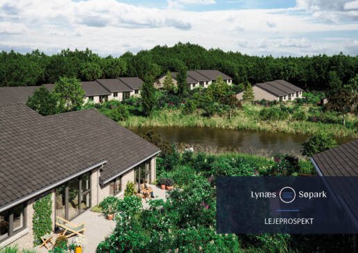 Natur · Nærvær · Fællesskab er rammen for de 51 nybyggede 1-plans rækkehuse smukt placeret ved sø omgivet af natur og skov. Kort afstand til strand, Lynæs Havn og indkøbsmuligheder. Rækkehusene er lejeboliger i tre størrelser: 85 kvm, 95 kvm og 105 kvm alle med egen lille terrasse.