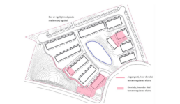 Ved at placere hele brandvejen i bunden langs §3 søen samt en accept af, at der ikke kan sikres overholdelse af tilgængelighedskrav for alle boliger, så kan terrænregulering mod sydvest generelt holdes nede på max. -1,5 m.